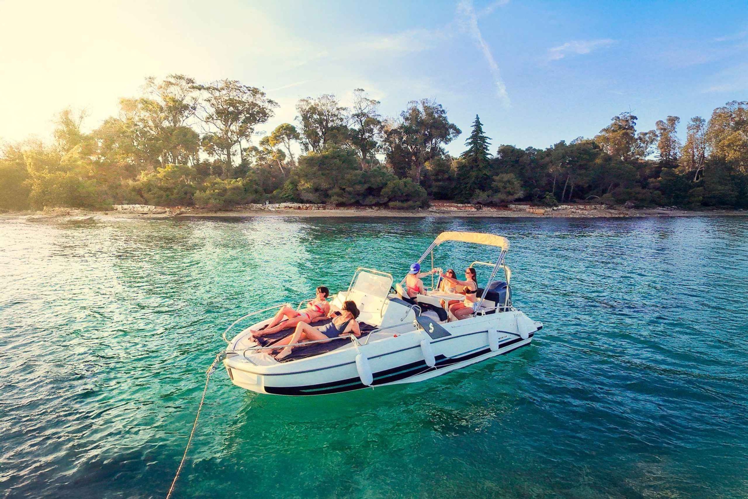 Oplev en magisk solnedgang mellem Lérins-øerne på en privat båd, hvor du kan slappe af, svømme, prøve en undervandsscooter og nyde en gratis rosé for en perfekt aften.