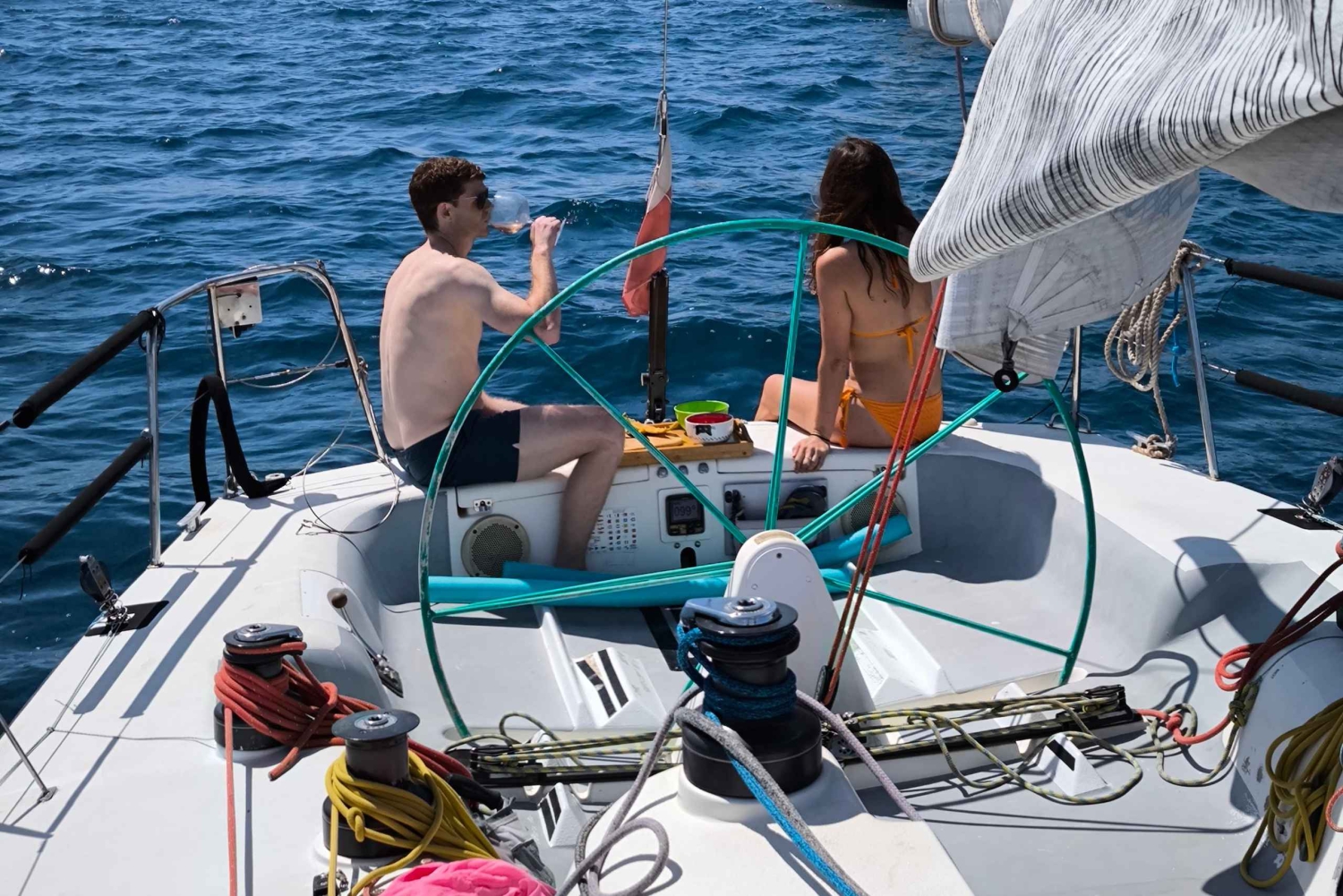 Meet your skipper at the Vieux Port de Cannes for a morning or afternoon excursion. After a short briefing, set sail on the Mediterranean. Cruise around the Island of Cannes and the Bay of Anse de l'Argent Faux or Mandelieu, depending on the weather. Immerse yourself in the Olympic spirit aboard a competition boat helmed by a former skipper who qualified for the London 2012 Olympic Games. After exhilarating sailing, anchor at a tranquil spot along the coastline. Jump into the sea for a swim and use the paddle board and snorkeling gear provided. Enjoy a snack when you’re back on board. At the end of the experience, return to the marina in Cannes.Includes