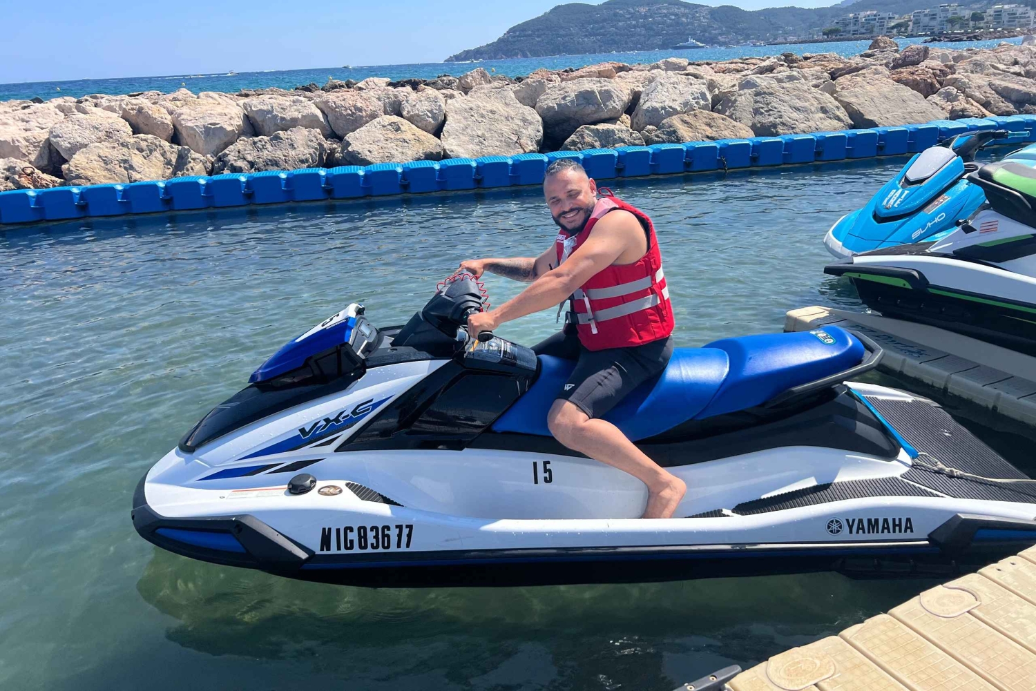 - From €130 for 30 minutes (2 people included) - €210 for 60 minutes (2 people included) - Jetski initiation from the age of 16 with parental authorization (identification of parents and the minor and a written authorization are required) - with or without a license (without a license, the tour will be done with an instructor) Ride together: 2 people on the same jet ski All necessary equipment is provided, and everything is included in the rental and tour price! Our bikes are new and all maintenance is done on time. During the high season, to avoid long lines and waiting, we recommend booking in advance to better guarantee your time! We also rent for the whole day (see rates and conditions) For cash payments, you'll need to make an advance reservation for €19.99 (no-shows won't be refunded the reservation amount)Includes