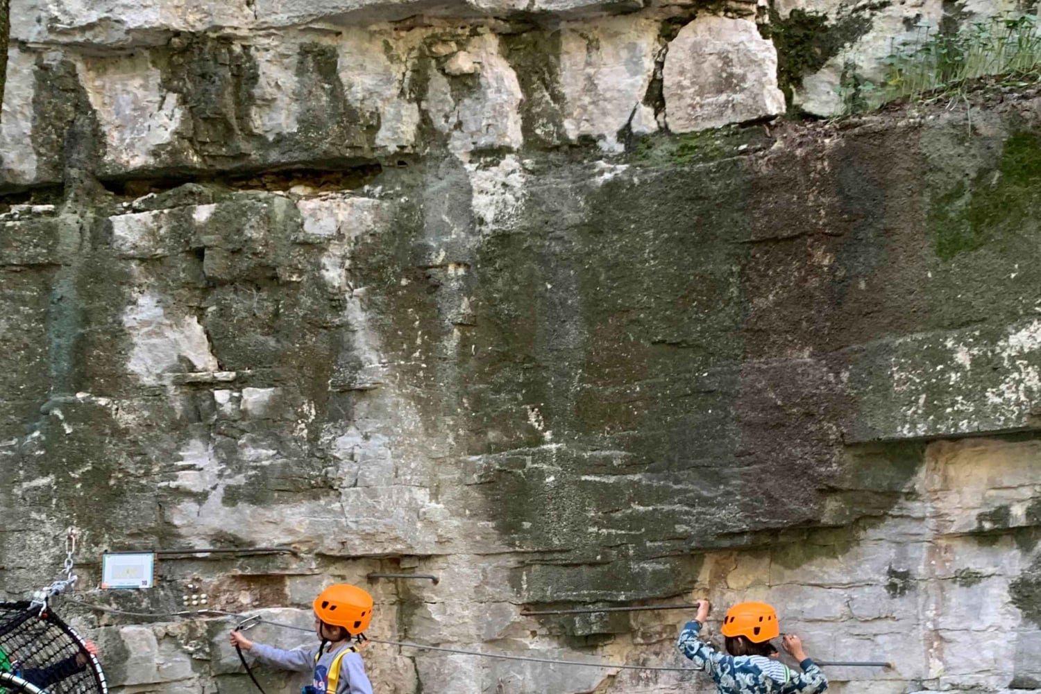 - Sécurité maximale : Les enfants sont équipés de baudriers et de casques