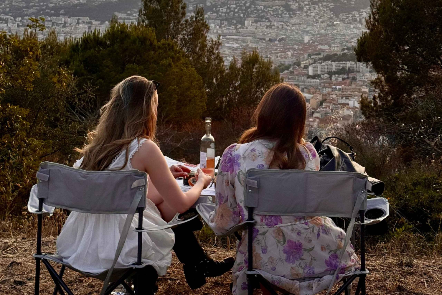 Commencez votre aventure au port de Nice. Grimpez doucement les hauteurs de la ville à bord d'un Land Rover Defender 1995 entièrement restauré. Empruntez de magnifiques routes vers l'un des secrets les mieux gardés de Nice, un belvédère paisible niché dans les collines, entouré de verdure, loin de la foule des touristes. Ce plateau naturel offre une vue sur le coucher du soleil, la mer et toute la ville qui s'illumine à la tombée de la nuit. Installez-vous dans ce cadre magique au son des cigales, avec une vue à couper le souffle et un verre à la main. Savourez un apéritif léger et authentique à la niçoise, comme le font les habitants de la région. C'est l'occasion de discuter, de rire, de profiter de la vue et de partager un moment privilégié. Lorsque le soleil se couche à l'horizon, la lumière est parfaite pour prendre des photos. Votre guide se fera un plaisir de vous prendre en photo ou de vous recommander les meilleurs angles (pas besoin de filtres). Une fois le soleil couché et vos verres vides, redescendez tranquillement vers Nice.Includes