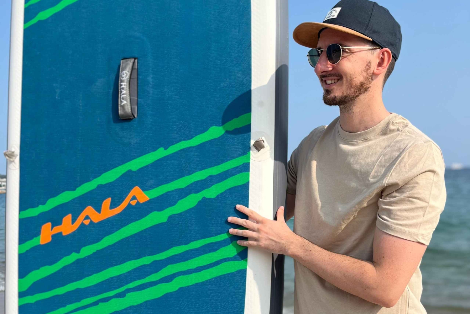 Inizia la tua esperienza sulla spiaggia con un caloroso benvenuto e un breve briefing di 5 minuti prima di uscire in acqua. Il tuo paddleboard sarà pronto per te direttamente in acqua alla spiaggia La Gallice a Juan-les-Pins. Se vuoi, ti forniremo giubbotti di salvataggio e una scatola impermeabile per tenere al sicuro i tuoi oggetti personali durante la tua escursione. Poi, parti per la tua avventura in paddle (tavola doppia per 2 persone, ma puoi noleggiarla anche da solo), esplorando acque cristalline, bellissime calette e punti panoramici al tuo ritmo. I paddleboard sono larghi e stabili, perfetti per i principianti. Se preferisci, puoi iniziare da seduto ed è facile alzarsi una volta che ti senti a tuo agio, soprattutto quando il mare è calmo. Il tuo host rimarrà a terra, seguendo il tuo percorso dalla spiaggia con la sua macchina fotografica. Le foto e i video saranno scattati principalmente all'inizio e alla fine della sessione, catturando momenti naturali e spontanei che riceverai dopo l'esperienza. Una volta tornati, guarderemo insieme le foto. Porta a casa un mix unico di natura, libertà e ricordi.Includes