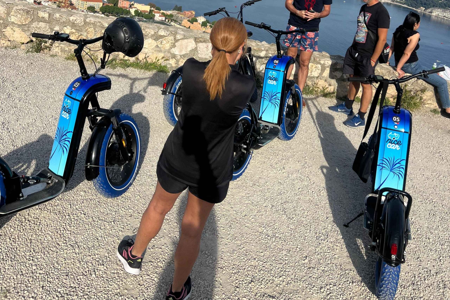 Partenza dolce attraverso la pista ciclabile intorno al porto per acclimatarsi con i nostri super scooter. Passaggio obbligato via cocobeach prima di raggiungere il Mont Boron e il suo famoso Fort Alban. Un paesaggio mozzafiato segnerà la nostra prima tappa. Una breve deviazione dal belvedere per vedere Nissa la Bella ti mostrerà l'estensione della metropoli. Scendiamo vertiginosamente verso Villefranche sur mer e il suo porto, dove tutti i turisti vengono a gustare i deliziosi piatti degli chef e a godersi l'unica spiaggia sabbiosa della zona. Un ritorno in riva al mare verso la Baia degli Angeli conclude questa epopea sportiva e amichevole in modo rilassato.Includes