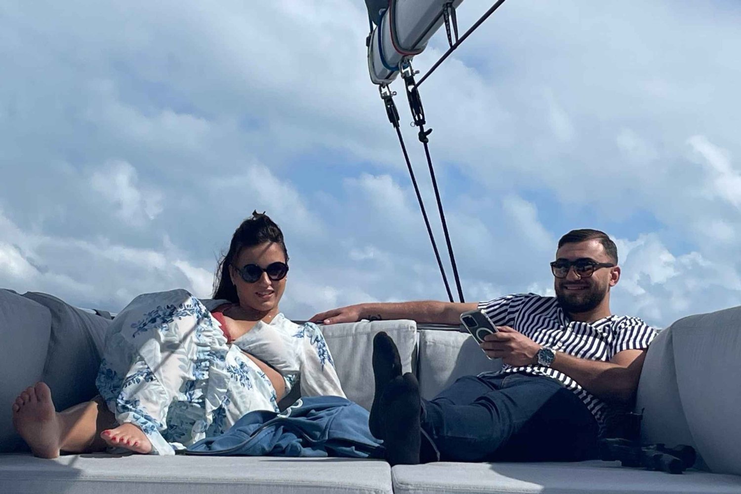 26 ReviewsCrociera all-inclusive a bordo di un catamarano premium nuovo di zecca per un giorno in piccoli gruppi alla scoperta dei luoghi più belli della regione e con possibilità di fare il bagno in calette dalle acque turchesi.