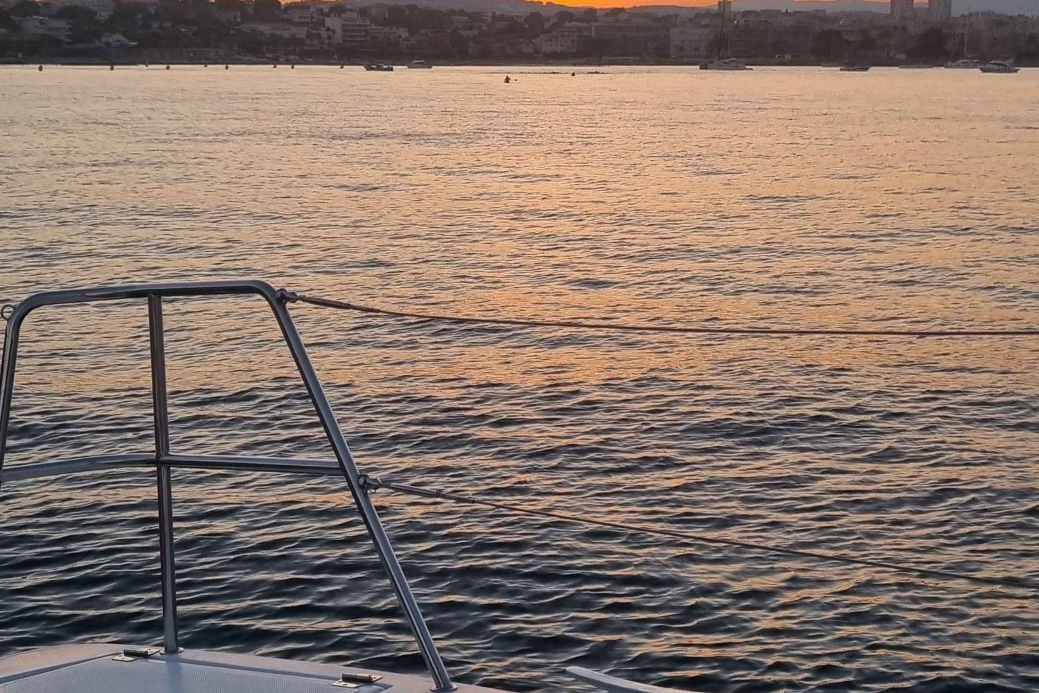 Imbarcati dal porto di Marina Baie des Anges (di fronte al bar Tabac du port) sul nostro catamarano premium nuovo e in piccoli gruppi (massimo 22 passeggeri) per vivere un'esperienza unica con tutti i comfort moderni in un'atmosfera familiare e rilassata. Un equipaggio professionale e diplomato della marina mercantile, che conosce perfettamente la regione e tutti i suoi angoli segreti, condividerà con te la sua passione durante una giornata a bordo. Scopri i luoghi più belli della regione, fai una pausa per nuotare, rilassati e goditi il relax assoluto in un ambiente magico. Durante l'escursione di un'intera giornata, un pranzo a buffet curato e preparato con prodotti freschi e regionali delizierà il tuo palato. Ti offriamo anche vini provenzali e un cocktail della casa preparato dal capitano. Lasciati andare ai tuoi desideri e rilassati, pensiamo a tutto noi. La tua unica preoccupazione? Esitare tra provare il paddle, prendere una maschera per esplorare i fondali marini, sorseggiare il tuo cocktail ammirando il paesaggio, provare il tuo tuffo più bello o concederti un pisolino sui lettini del ponte superiore... Ti aspetta una giornata di vera vacanza!Includes