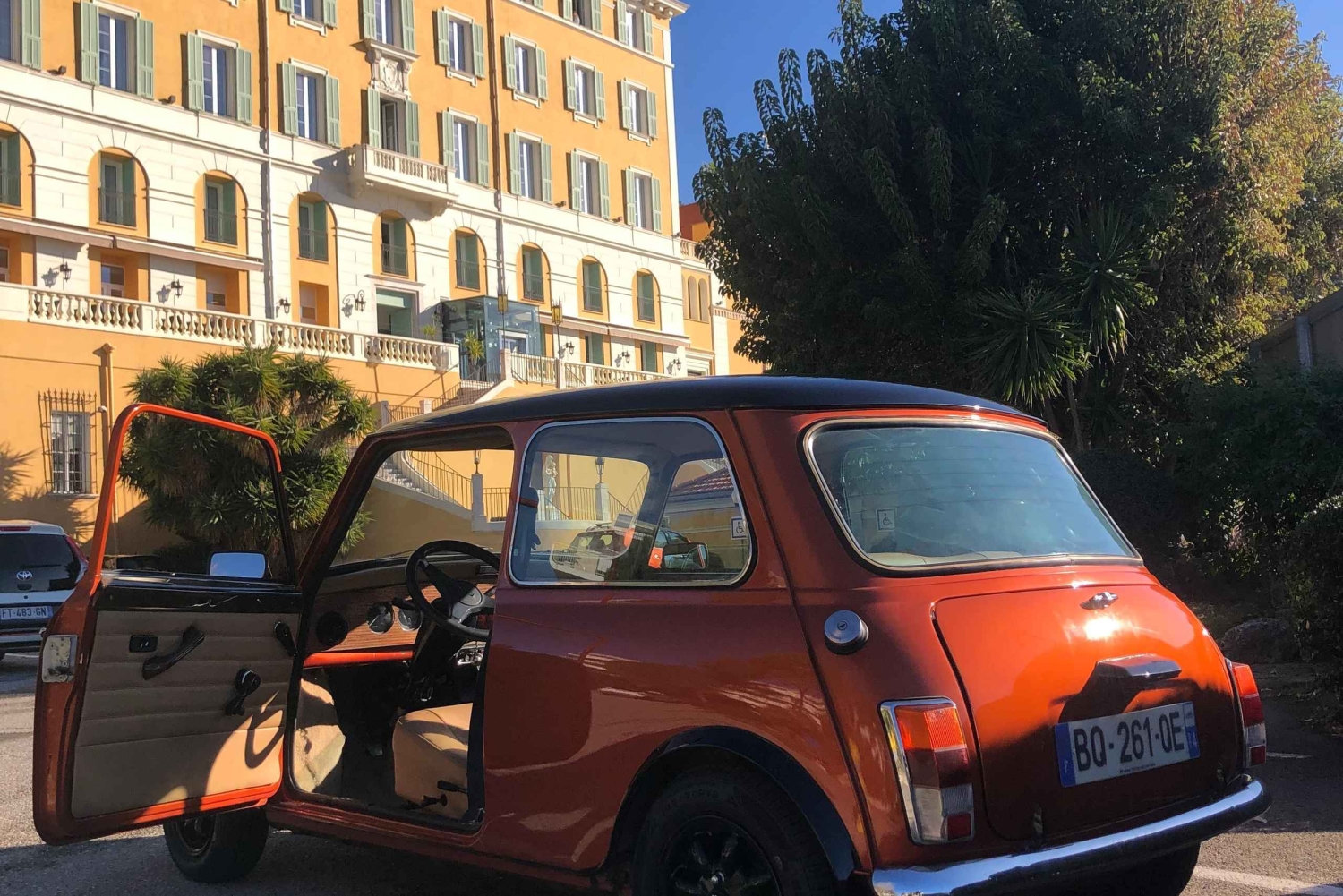 Boek een Mini Austin 1987 met gids-chauffeur voor een retro-uitstapje aan de Franse Rivièra. Dit iconische voertuig trekt de aandacht en maakt elke rit onvergetelijk