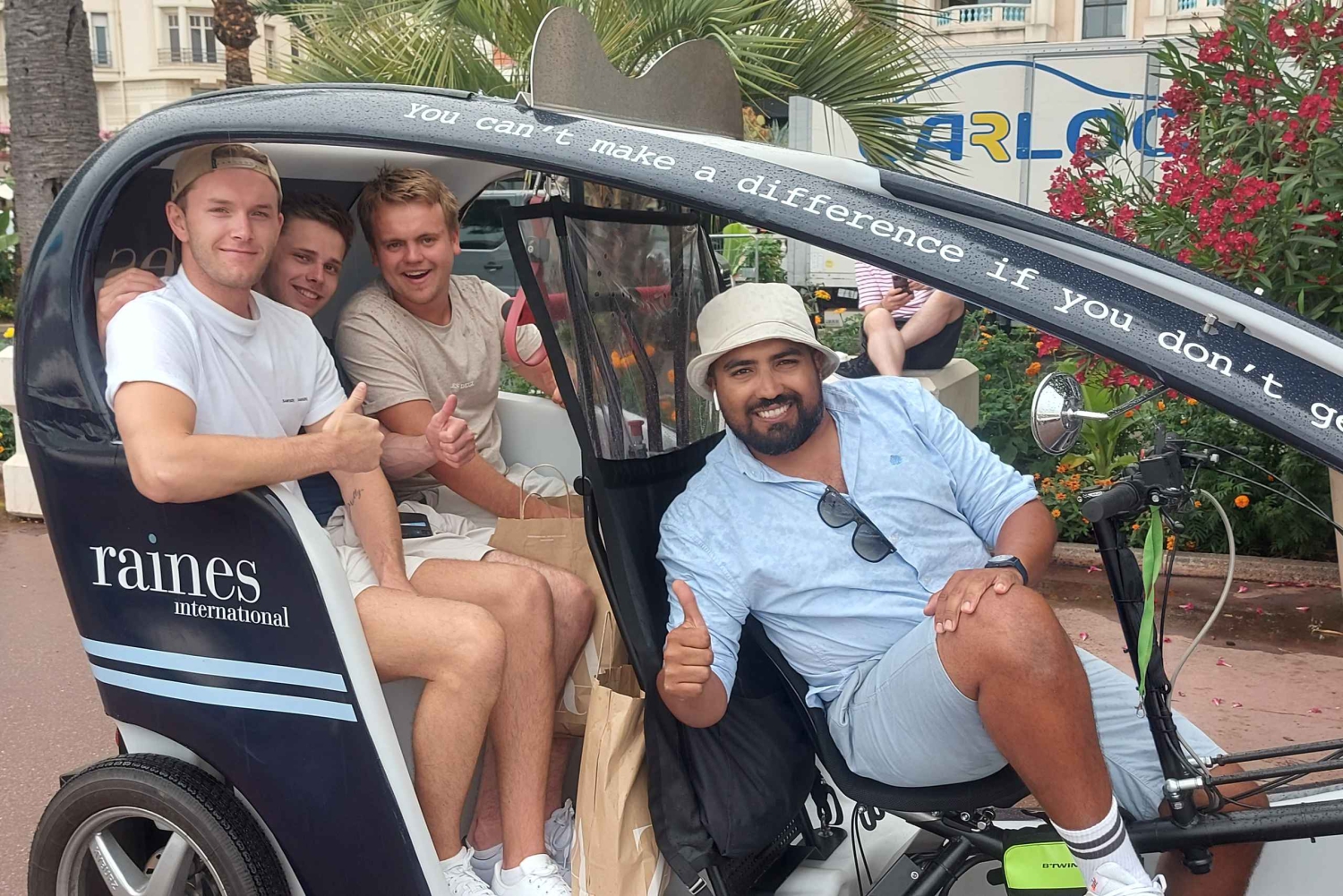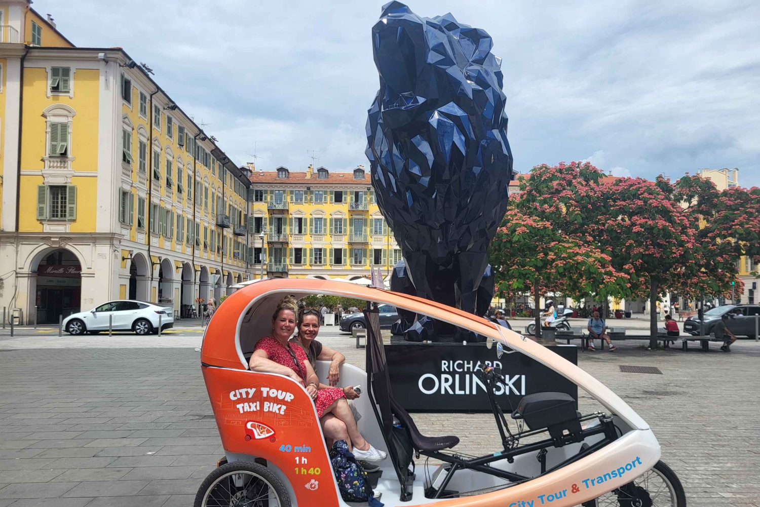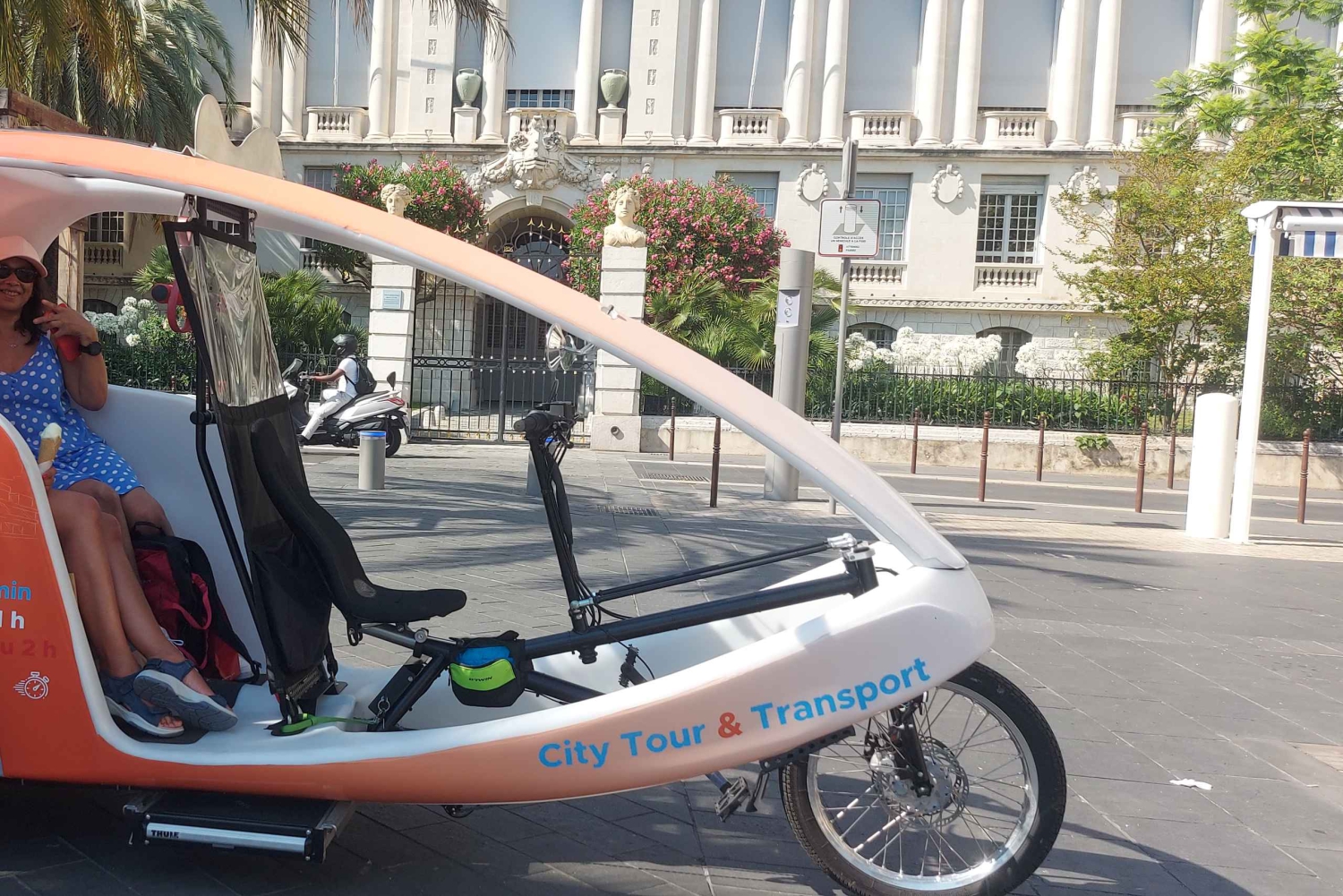 Voor u hebben we de beste rondleidingen voorbereid, zodat u de stad op een unieke manier kunt bezoeken, kunt genieten van dit magische moment en de geschiedenis van Nice kunt ontdekken, de schoonheid van de kleine straatjes, de beroemde Promenade des Anglais langs het oude Nice , de bloemenmarkt of de heuvel van het kasteel, de Russische kathedraal en vele andere toeristische en historische delen van de stad. Tot uw beschikking, een lokale gids en een meertalige audiogids om u zoveel mogelijk informatie te geven over de verschillende monumenten en de geschiedenis van de stad Nice, zal uw piloot u de beste restaurants, pubs, discotheken, cafés aanbevelen... Onze Chauffeurs zijn glimlachend, sociaal en opgewekt, soms zelfs heel grappig, hun enige doel is om u een unieke en verrijkende ervaring te laten beleven. - Bike Taxi Tour in Nice - De beste manier om de stad op een ecologische manier te ontdekken.Includes