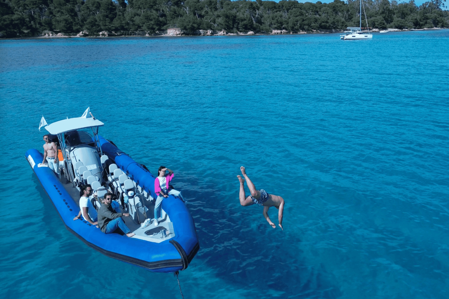 Vaar met een speedboot naar het eiland Lerins en bewonder de turquoise zee. Ervaar de sensatie van zwemmen tussen de prachtige Lérins-eilanden en verken het betoverende onderwater Ecomuseum met de meegeleverde snorkelspullen. Zwem tussen de fauna en flora van de Middellandse Zee. Ga van boord op het eiland Sainte-Marguerite voor een verkenningstocht van ongeveer 30 minuten. Dompel je onder in de rijke geschiedenis van het eiland terwijl je door de schilderachtige landschappen, weelderige tuinen en wijngaarden wandelt. Neem even de tijd om te genieten van lokale versnaperingen in een van de charmante eilandcafés. Ga verder naar de 'Baie des Milliardaires', die alleen per boot bereikbaar is. Ontdek het prachtige landschap, genesteld in het hart van de weelderige mediterrane vegetatie, en houd je ogen open voor de prachtige villa's die verscholen liggen tussen de bomen. Om veiligheidsredenen is het voor passagiers die niet kunnen zwemmen niet toegestaan om het water in te gaan.Includes