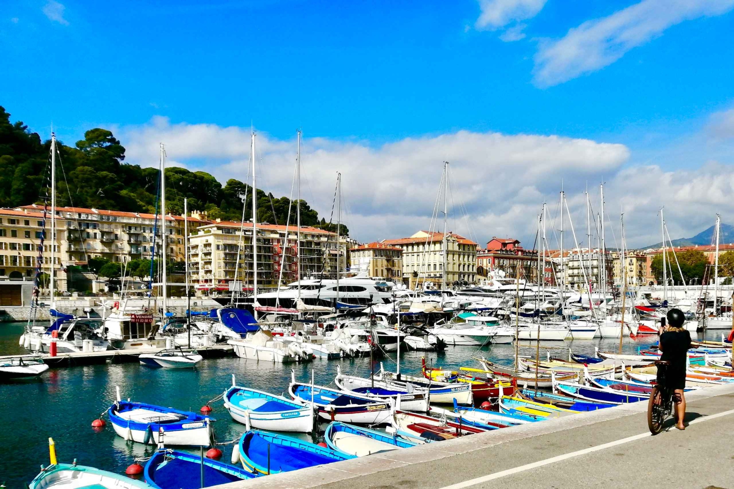 Følg guiden din gjennom våre eldste og vakreste bydeler med tusenvis av italienske, franske og internasjonale stilarter på denne 3 timer lange elsykkelturen: Port Lympia, den barokke gamlebyen, den verdenskjente strandpromenaden (Promenade des Anglais), det krystallklare vannet på Kapp Nice med hundrevis av imponerende Belle Epoque-villaer som vender ut mot havet (hvor noen kjendiser bor), sykle opp og ned de største bakkene i Nice sentrum, uten anstrengelse takket være våre splitter nye elsykler (veldig komfortable, produsert i Frankrike). Sykle opp 2 bakker: på den første den beste sjøsiden av Nice og den fantastiske utsikten som omfavner Villefranche-bukten til Italia! På den andre den berømte Castle Hill hvor du vil beundre hagene, fossen, ruinene og stoppe for å nyte utsikten over Bay of Angels og rett på toppen av havnen. Du vil bli kjent med Nices sjel med en lokal ekspert, dens hemmeligheter, hovedmonumentenes historie, torgenes arkitektur og nyte den lille labyrinten av fargede gater i gamlebyen (mulig stopp på det beste markedet i Nice i løpet av formiddagsturen).Includes