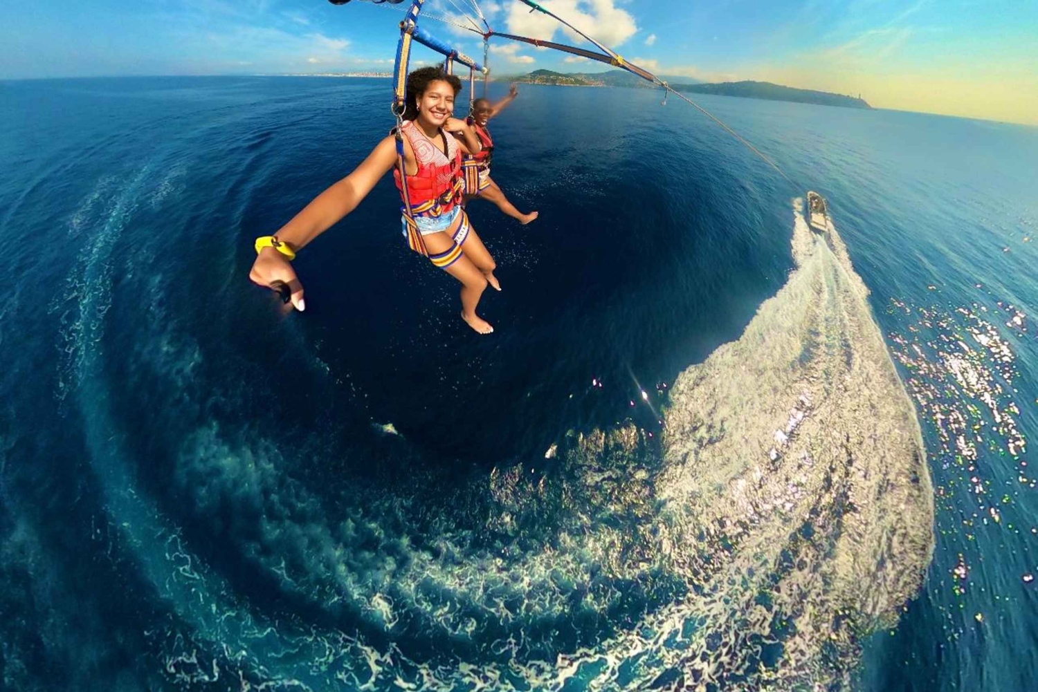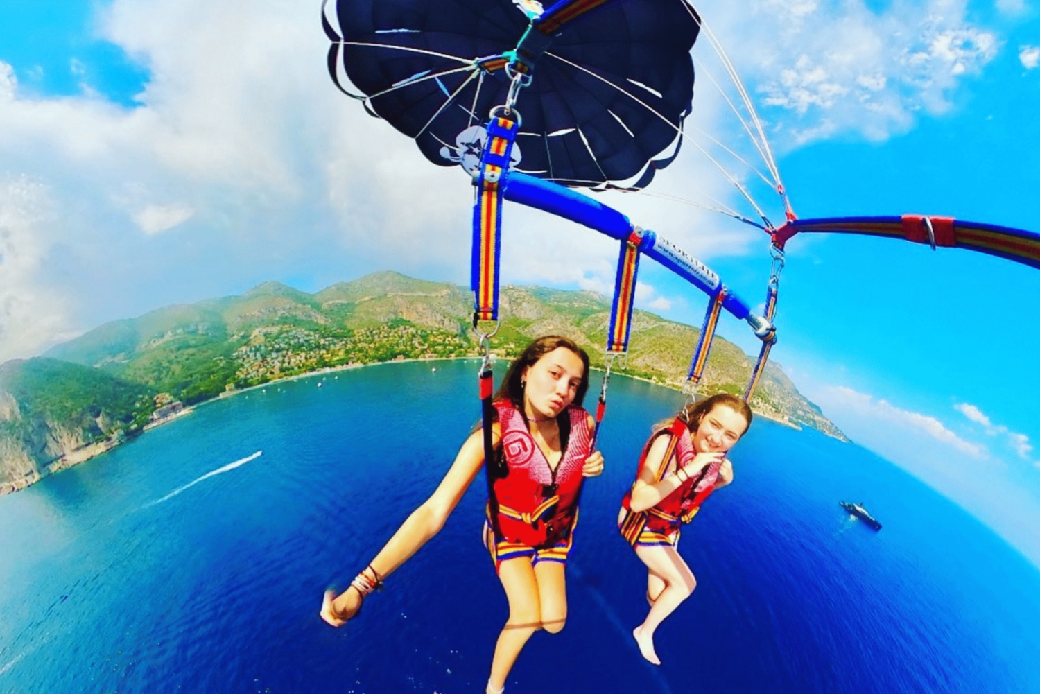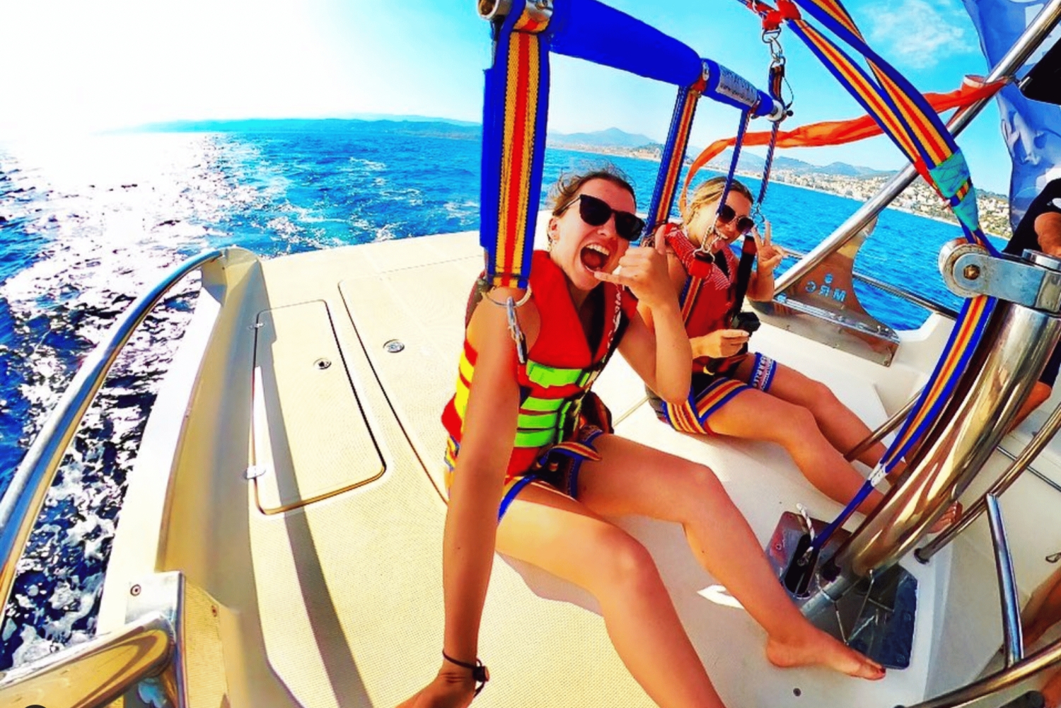 Gå om bord i en komfortabel motorbåt fra Lympia havn i Nice, og svev over vannet for en fantastisk utsikt over kysten. Velg å parasaile med to eller tre personer. Flytur for 2 eller 3 personer hvis vekten ikke overstiger 160 kg - Individuelle flyvninger er forbudt - MØT OPP 15 minutter før avtalt tid - Bli utstyrt med parasailingutstyr av høy kvalitet med hjelp av instruktøren din, som har vært sertifisert vannsportinstruktør siden 1998. Oppdag spenningen ved å fly opp til 100 meters høyde. Nyt utsikten over fantastiske strender og krystallklart vann mens du svever i ro og mak. Hold deg i denne høyden i ca. 12 minutter før du lander på båten uten å bli våt. Etter endt parasailing-eventyr returnerer dere til møtestedet med uforglemmelige minner. Den totale varigheten på utflukten kan være opptil en time, avhengig av oppmøte og reservasjoner i dette tidsrommet. BILLETTEN DIN ER KUN GYLDIG PÅ DET RESERVERTE TIDSPUNKTET. HVIS DU KOMMER FOR SENT TIL OMBORDSTIGNING, VIL INGEN REFUSJON VÆRE MULIG, OG INGEN MULIGHET TIL Å OMBOOKE AV HENSYN TIL ANDRE TILSTEDEVÆRENDE, KOM I TIDE 15 MINUTTER FØR AVGANG. BARE PERSONER SOM FLYR KAN KOMME PÅ BÅTEN. INGEN MEDFØLGENDE PERSONER ER MULIG OM BORD Utendørsaktiviteter er avhengig av værforholdene og kan bli avlyst hvis forholdene ikke er gode. Du vil bli funnet igjenIncludes