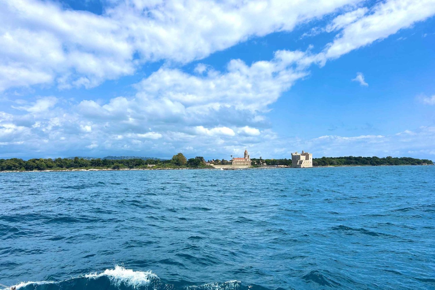 Embarcarás num barco de recreio de 14 metros. Descobre os locais mais bonitos da Côte d'Azur: o Cap d'Antibes, as ilhas de Lérins e a baÃa de Cannes. Partida do porto de Golf Juans, à hora que escolheres. Vamos descobrir as ilhas de Lérins ao largo de Cannes. Faremos uma pausa entre as ilhas, onde você poderá nadar nas águas turquesa, admirar o fundo do mar com máscara e snorkel, tomar uma bebida a bordo do barco e relaxar. Vamos continuar o nosso pequeno cruzeiro em direção a Cannes, passando pelo castelo do Homem da Máscara de Ferro, na ilha de Sainte-Marguerite. De acordo com os teus desejos, podemos adaptar e prolongar o nosso cruzeiro. Por fim, vamos regressar ao porto de Golf Juans, onde podes desembarcar.Includes