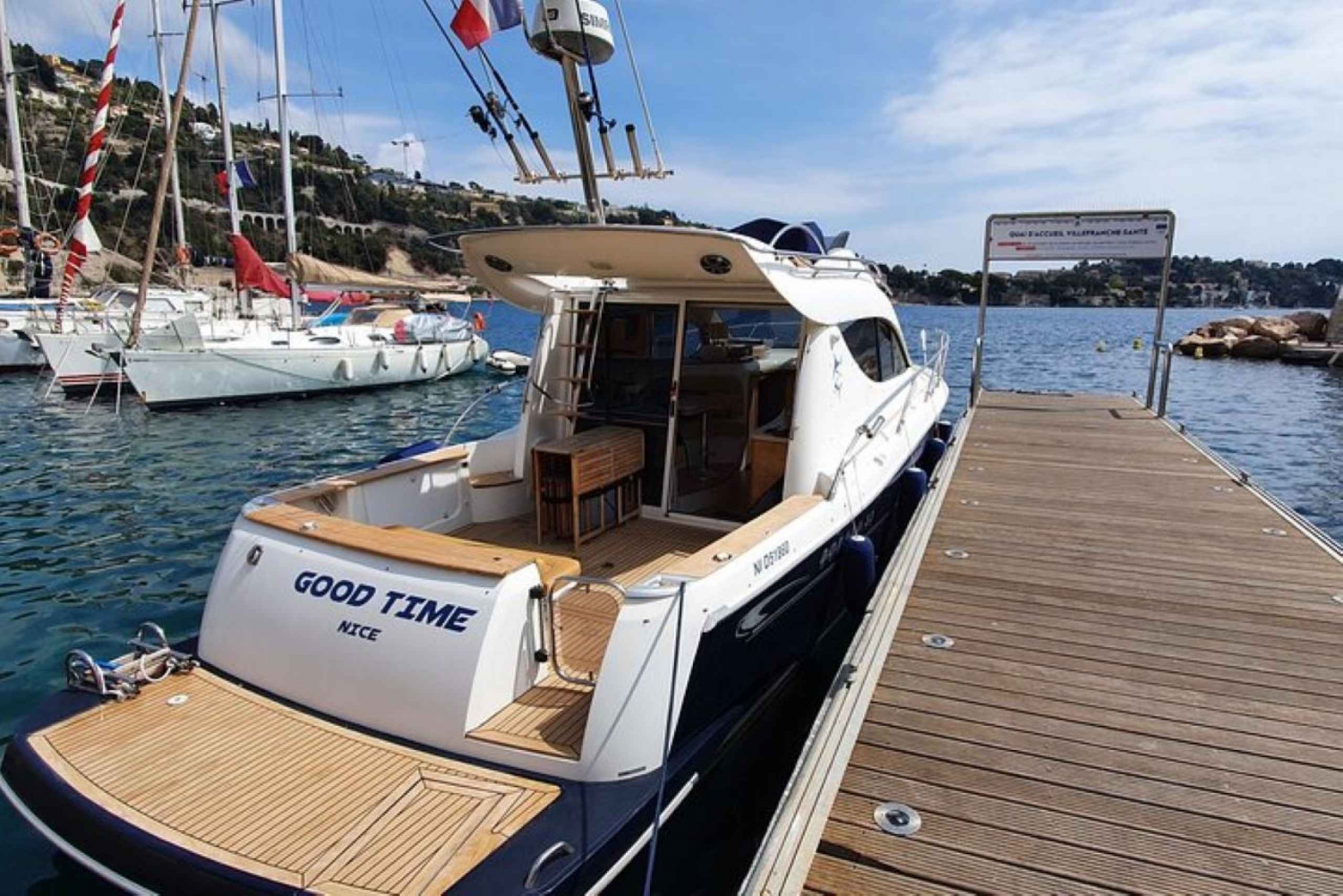 Добрый день, Добро пожаловать на борт! Мы — Эрик и Винсент, два друга детства, которым за пятьдесят, и мы всегда были увлечены морем. Мы будем рады приветствовать вас на нашей лодке с подходящим названием «GOOD TIME». Мы выросли в этом фантастическом регионе и знаем все лучшие места, куда можно вас отвезти, чтобы ваш день стал по-настоящему незабываемым. Присоединяйтесь к нам, чтобы открыть для себя нашу страсть к морю. Мы обещаем вам отличный день, о чем свидетельствуют отзывы наших гостей. Наша лодка базируется в прекрасном порту Сен-Жан-Кап-Ферра, в 8 км от порта Ниццы (до которого легко добраться на автобусе или Uber). Отсюда мы и начнем наше путешествие. Вы можете выбрать свой маршрут. Обычно мы плаваем в бухте Болие, чтобы открыть для себя Эз, Кап-д'Ай, полуостров Кап-Ферра с его великолепными виллами с видом на море. Пейзажи в нашем районе являются одними из самых красивых на Французской Ривьере. Первая остановка для купания в удивительной бухте под названием «Les Fossettes», известной только местным жителям, среди морских сосен, цикад и бирюзовых вод. Затем мы отправимся в удивительную бухту Вильфранш с видом на красивый старый город на берегу моря и второй остановкой для купания (только в рамках 4-часового тура). Включены местные свежие закуски и напитки (вода, газированные напитки). Наша лодка очень чистая. Ее планировка идеально подходит для наслаждения морем и солнцем, с несколькими отдельными открытыми пространствами с шезлонгами: носовая палуба, флайбридж, кормовая палуба, большая платформа, душ с теплой водой, звуковая система с Bluetooth. Места для парковки «parking Cros dei pin» в 100 метрах от лодки.Includes