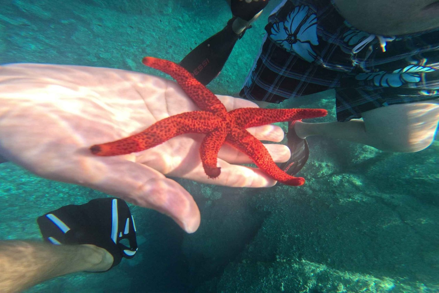 Исследуйте на лодке и с помощью сноркелинга дикие каланки Эстереля! Отправьтесь в уникальную экскурсию на лодке между секретными бухтами, красными скалами и охраняемыми морскими глубинами. Экскурсия, сочетающая в себе отдых, сноркелинг и знакомство с природой. Вместе с инструктором в воде вы сможете провести увлекательное и познавательное исследование. Отправляясь из порта Агай-Ривьер, поднимитесь на борт нашего полужесткого катера и отправляйтесь к бухтам Эстереля с их впечатляющими вулканическими рельефами. Надев ласты, маску и трубку, вы будете плавать по поверхности, открывая для себя богатую экосистему: стаи сардин и кастаньол, морских ежей, морских звезд, здоровых водорослей, осьминогов, а иногда даже... барракуд! Эта экскурсия, рассчитанная на небольшую группу (максимум 12 человек), разработана с учетом требований безопасности, образовательной ценности и доступности для детей от 6 лет. Она обещает незабываемое погружение между скалами и бирюзовым морем в одном из самых диких и нетронутых уголков Лазурного берега. Необходимо иметь при себе: купальный костюм, полотенце, солнцезащитный крем, воду. Просьба прибыть за 10 минут до времени отправления.Includes