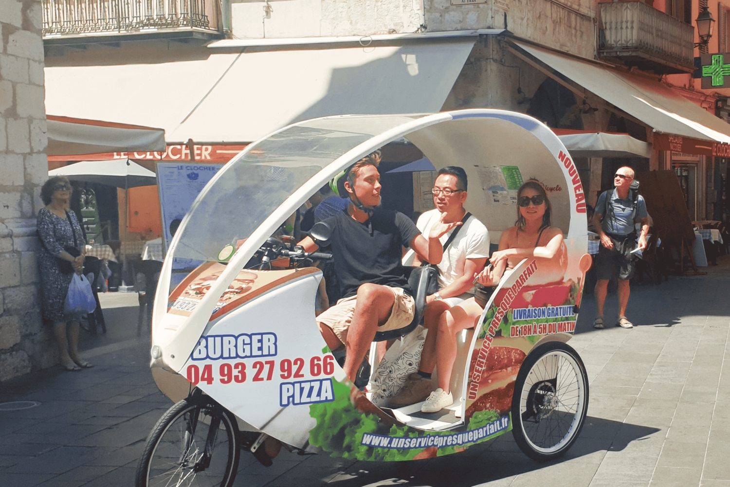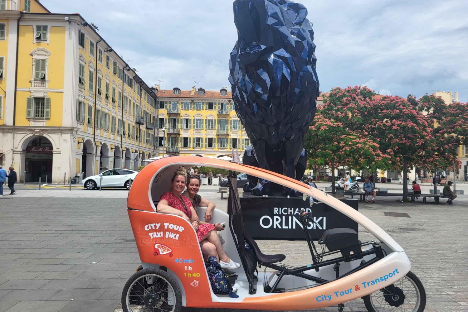 Privat transport Upphämtning och avlämning vid ert hotell/lägenhet Vänlig och leende lokal guide. En mycket bekväm, toppmodern cykeltaxi med europeisk standard. Livekommentarer ombord / flerspråkig audioguide med högtalartelefon Wi-Fi ombord Du kan stanna när som helst för att ta foton Mycket trevlig guidad rundtur i staden Nice.Easy cancellation